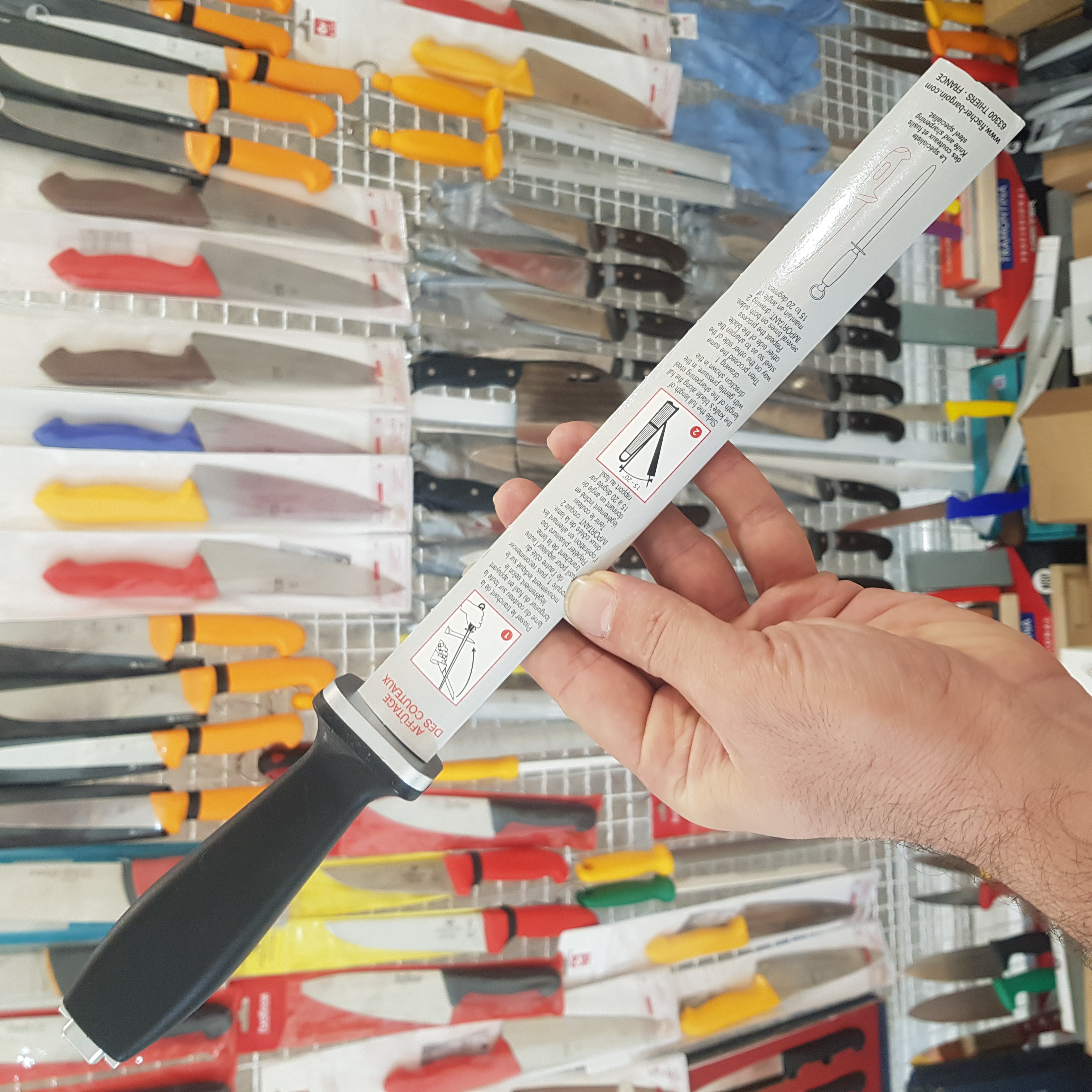 مصقل بادومی ۲۵ سانتیمتری فیشر فرانسه یکی از شناختهشدهترین و حرفهایترین ابزارهای نگهداری تیزی چاقو در جهان است.